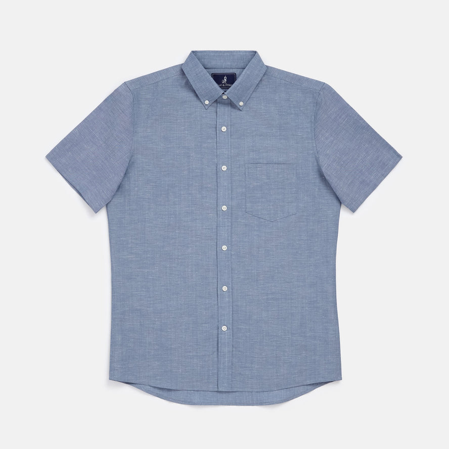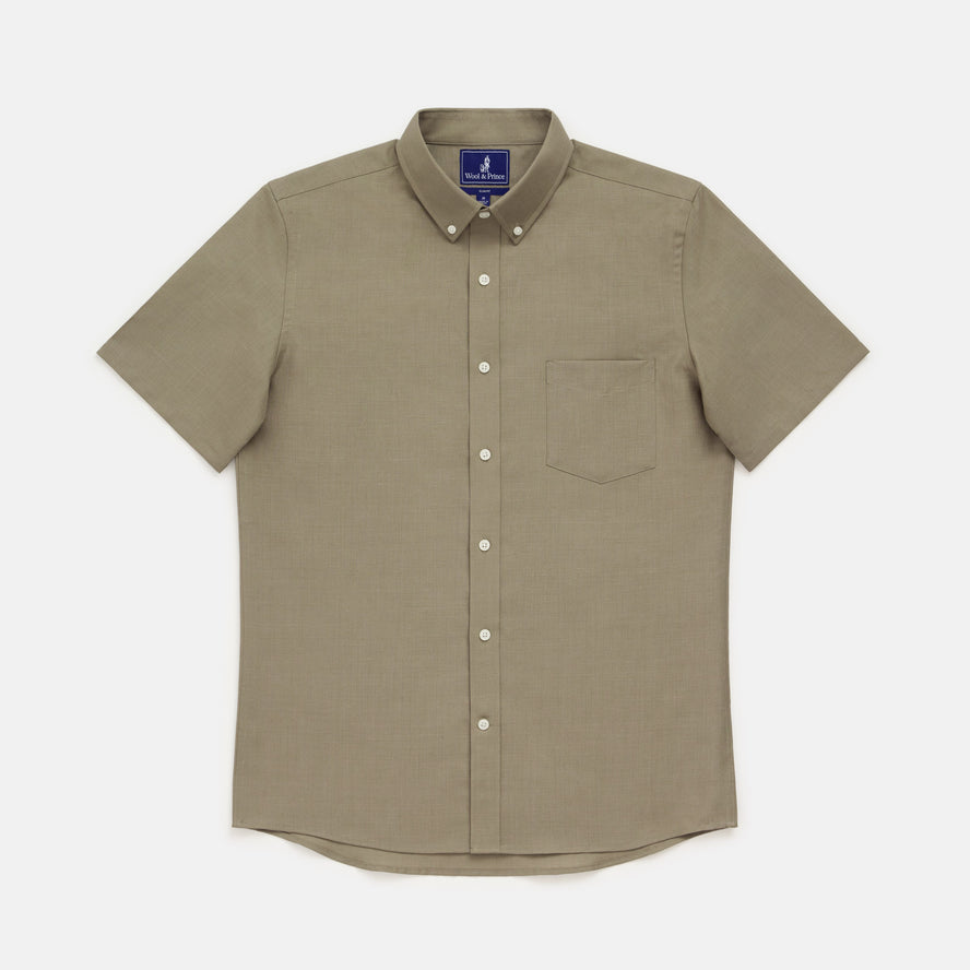 Wool Linen Short Sleeve Button-Down Shirt