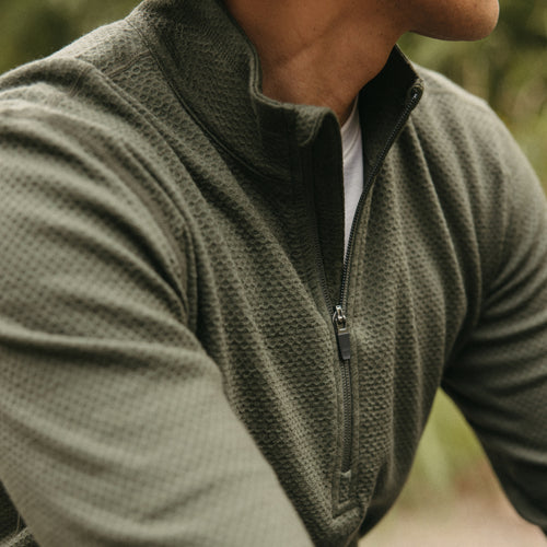 Our midweight Honeycomb Waffle Quarter-zip adds depth to any outfit with its unique, eye-catching texture.